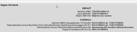 Långt ner i enkäten följer information under rubriken Region Sörmland med tillhörande bolag - tekniska detaljer. Information som visas om man valt EDI för elektronisk faktura är både avsedda för Fulltextfaktura som för Svefaktura.
